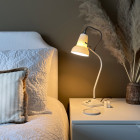 Made with bone china, the delicate shade turns translucent when turned on, bringing a new level of sophistication to the Anglepoise brand. With a fixed bent arm, this design moves away from the 3-spring Anglepoise mechanism, but still maintains a good directional light with an adjustable shade. Suitable for commercial and home spaces this lamp is perfect for bedside tables and will add elegance to the room with its warm glow and pretty shade.