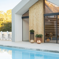 Add the plate kit and use your lamp to enjoy your coffee or drink in the garden, or bring more plants to your balcony. The flower pot and table kits are available in a matching oxide red or black anthracite finish. Whatever the use, the Bols are a statement light. Available in oxide red or black anthracite and two sizes to choose from. The large Bols can take both the table and flower pot kit, whereas the small will only take the table kit tray.