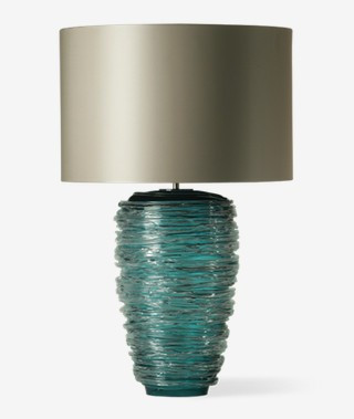 Porta Romana Thread GLB32 Table Lamp. Based on the same body shape as the Blob Lamp, the Thread Lamp has a softer feel derived from the delicate glass threading wrapped around the entire surface of the piece. The body of the lamp is made in a variety of stunning colours: olive, charcoal, amber, clear and turquoise , the threading is always in clear glass. The diffuser is available in a number of different colours, please see additional photos.